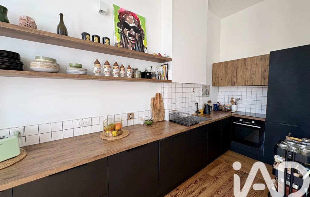 L'espace de vie est lumineux grâce à ses 3 grandes fenêtres (récemment remplacées) et à son exposition Est. On y retrouve une très belle cuisine sur mesure, entièrement aménagée et équipée. Les finitions soignées et les matériaux de qualité confèrent à cet espace une atmosphère cosy et moderne.
