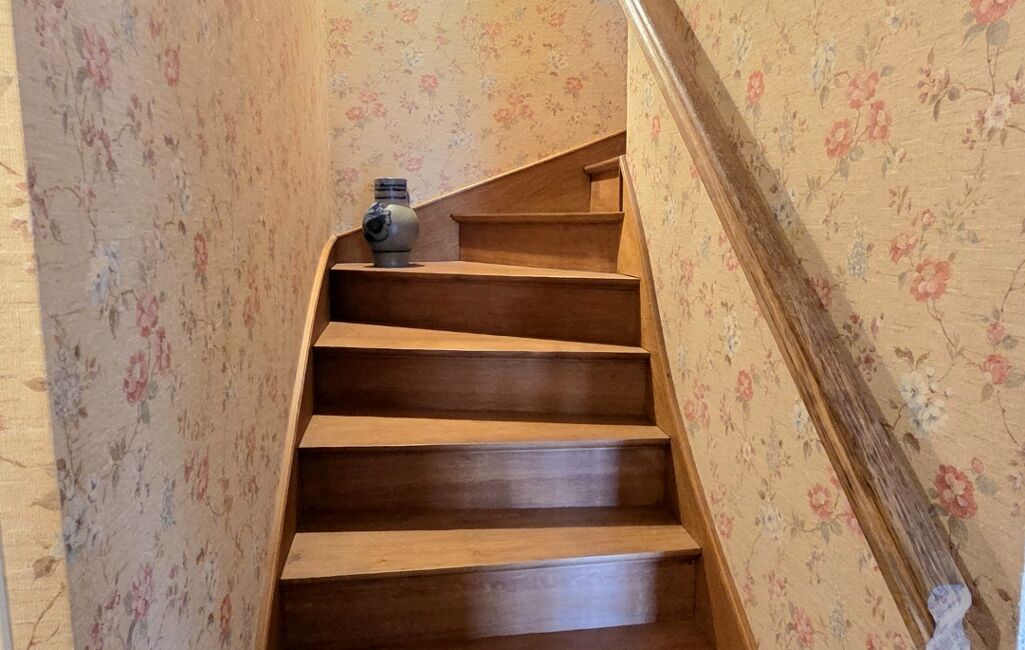 A l'étage se trouve un pallier de 1,83 m² qui dessert deux belles chambres mansardées de 20,58 m² et 22,49 m² (loi carres) et un WC avec un lavabo.