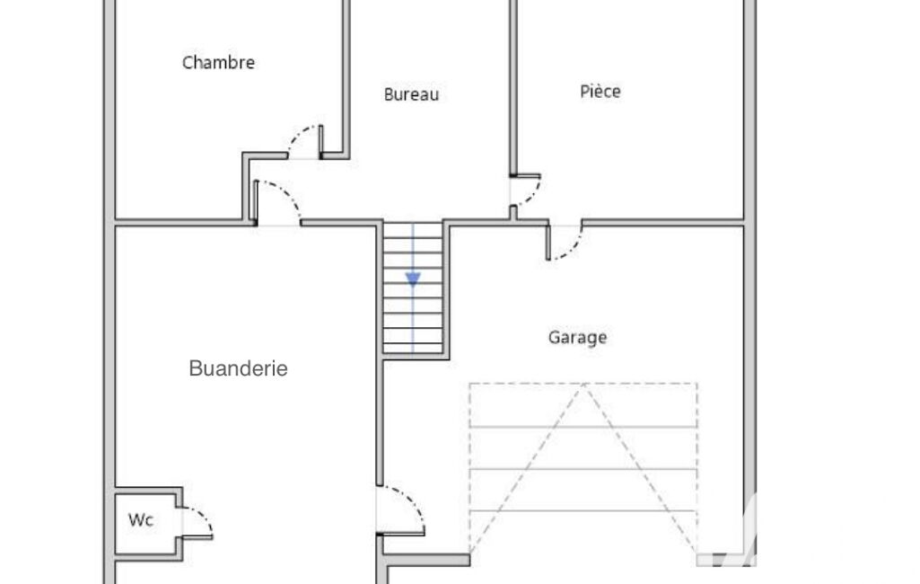 - en rez de jardin, 1 chambre et 1 bureau, 1 pièce pouvant être aménagée en 4e chambre, 1 salle d’eau avec WC-buanderie, 1 grand garage.