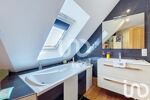 A l'étage, la pallier dessert 2 premières chambres, puis une salle de bain avec baignoire et douche, 2 autres chambres avec leur propre salle d'eau, une dernière chambre avec dressing, et un wc.