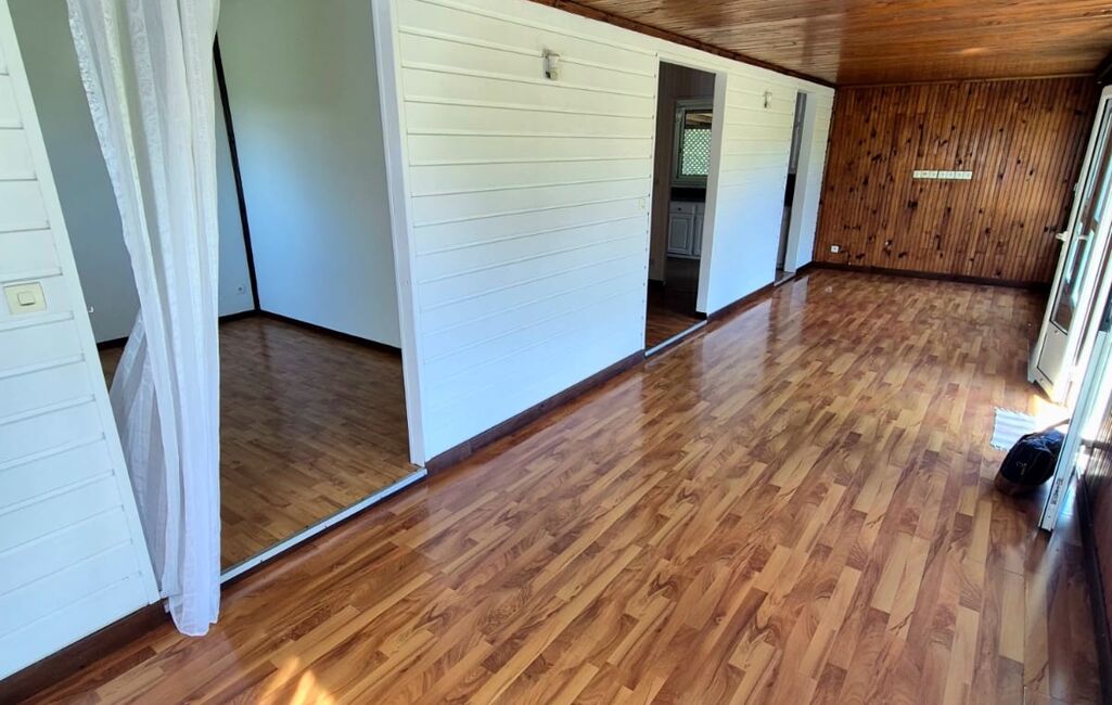 Maison de plain-pied fonctionnelle et agréable comprenant 2 chambres, 1 bureau, un salon lumineux, une véranda, ainsi qu’une grande varangue fermée offrant un bel espace de vie supplémentaire.