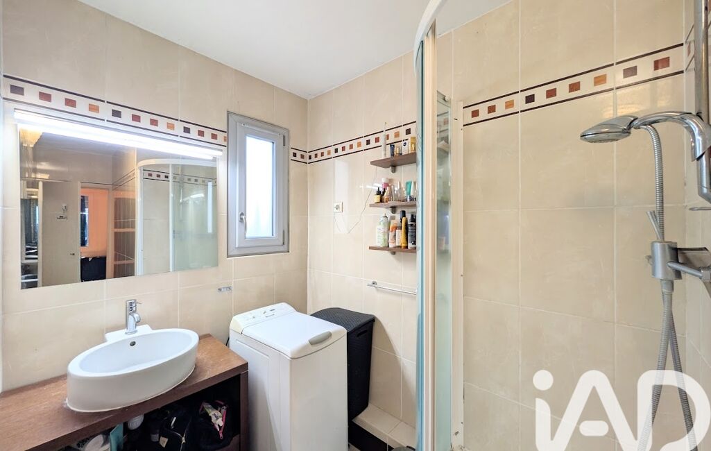 •Une salle d’eau avec cabine de douche et meuble simple vasque et espace buanderie.