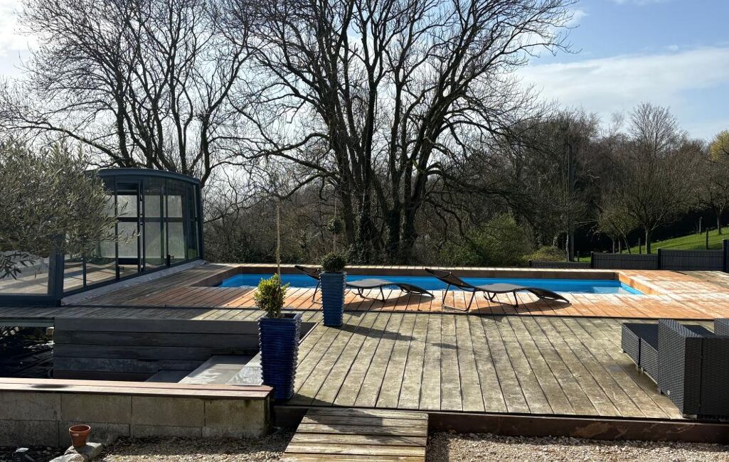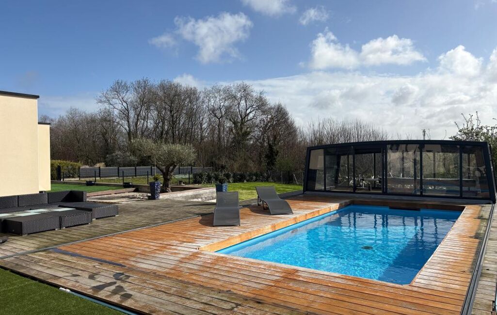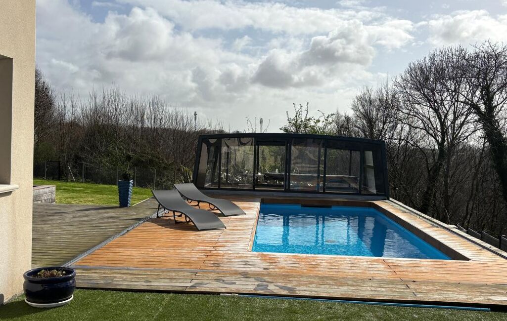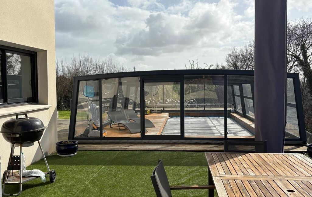 Piscine béton chauffée 7x3 m avec Dôme aluminium rétractable pour une utilisation prolongée