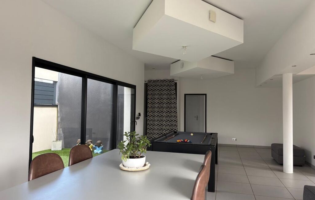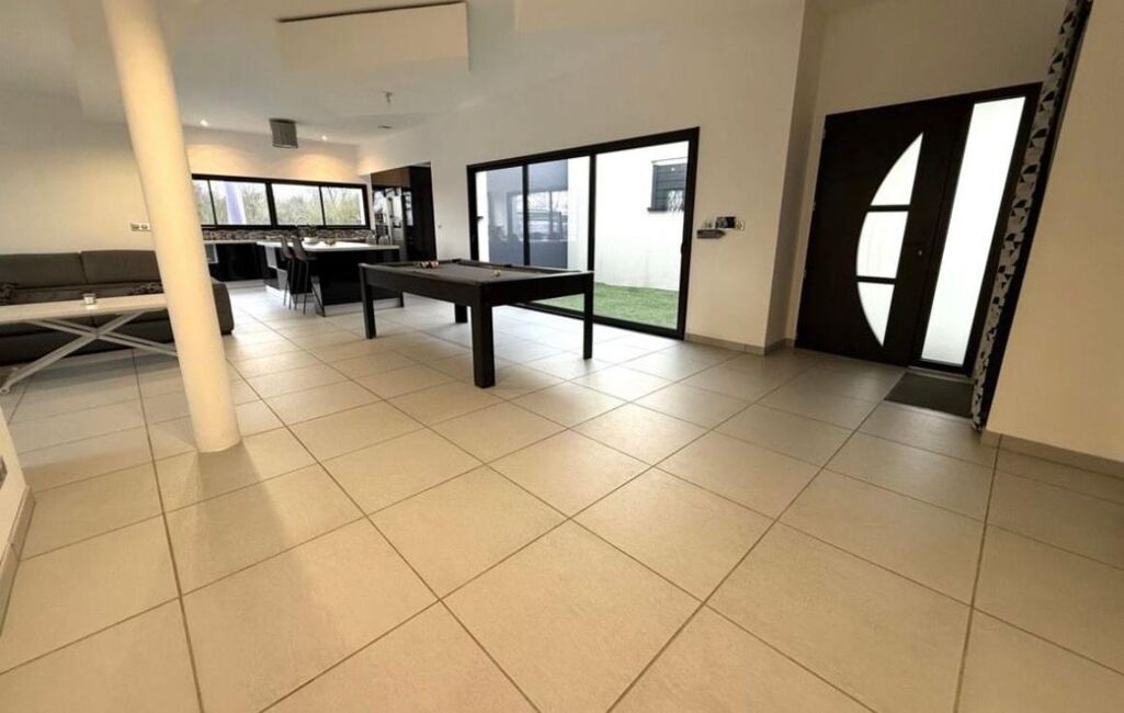 Très grande pièce de vie baignée de lumière avec patio