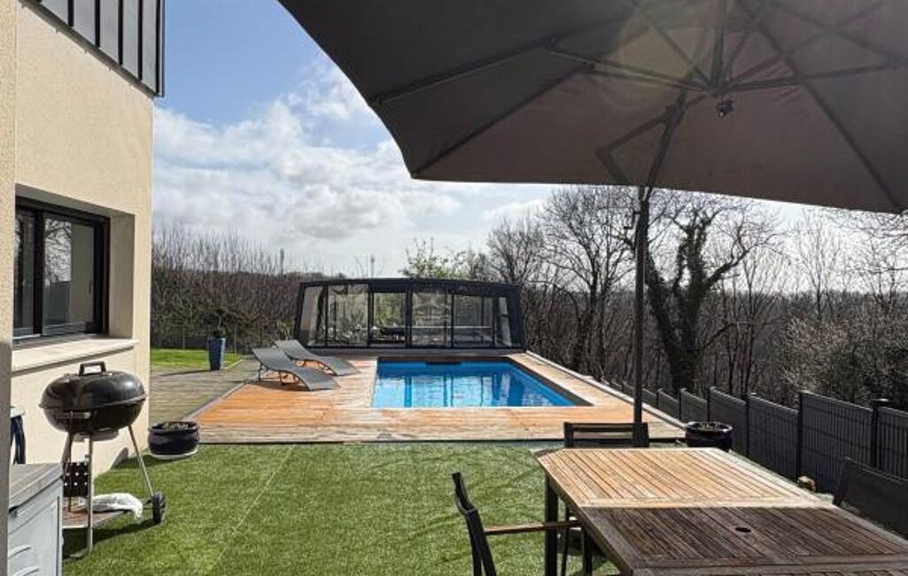 Implantée sur une parcelle de 1 250 m², en bord de forêt et sans vis-à-vis, cette villa d'environ 140 m² habitables offre un environnement privilégié et apaisant.