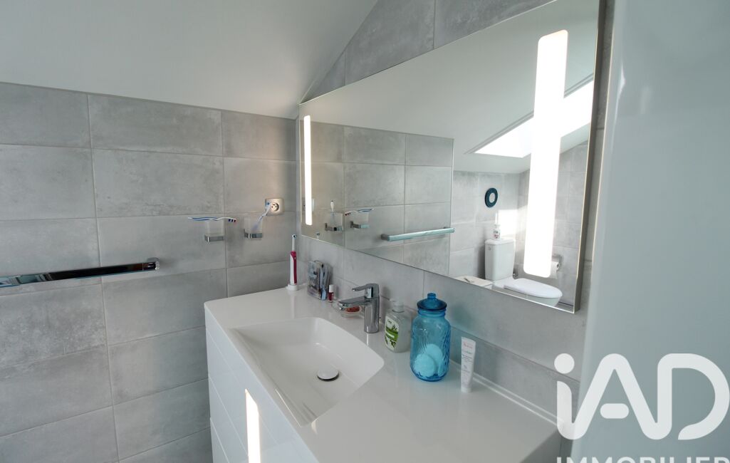 Cette maison dispose d'un sas d'entrée, d'un double séjour traversant de près de 34 m2 avec un poêle à pellets, accès direct à la terrasse et au jardin, une cuisine aménagée et équipée, un wc séparé, divers espaces de rangements, accès au garage avec une ouverture automatique et une mezzanine pour des rangements supplémentaires.