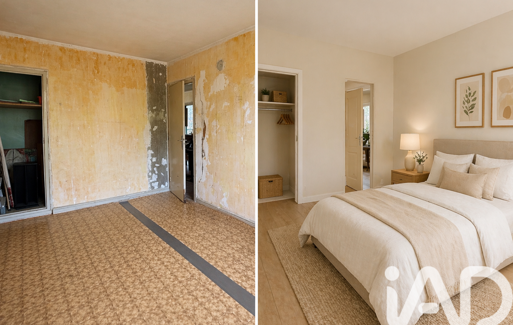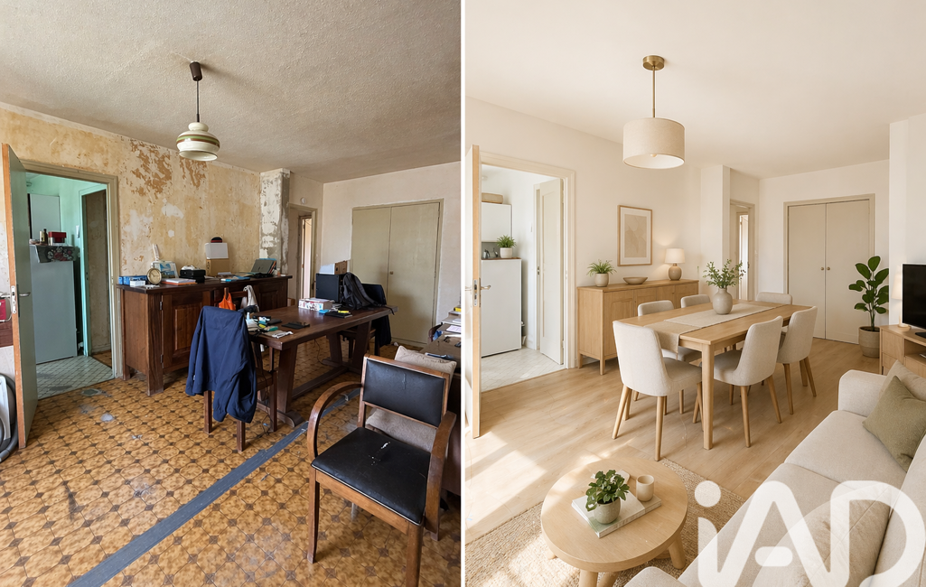 Resté dans son jus, cet appartement nécessite des travaux de rénovation, mais représente une belle opportunité pour repenser les espaces et créer un intérieur à votre goût. Pour aider à mieux imaginer son potentiel, les photos proposent un avant/après d’aménagement.