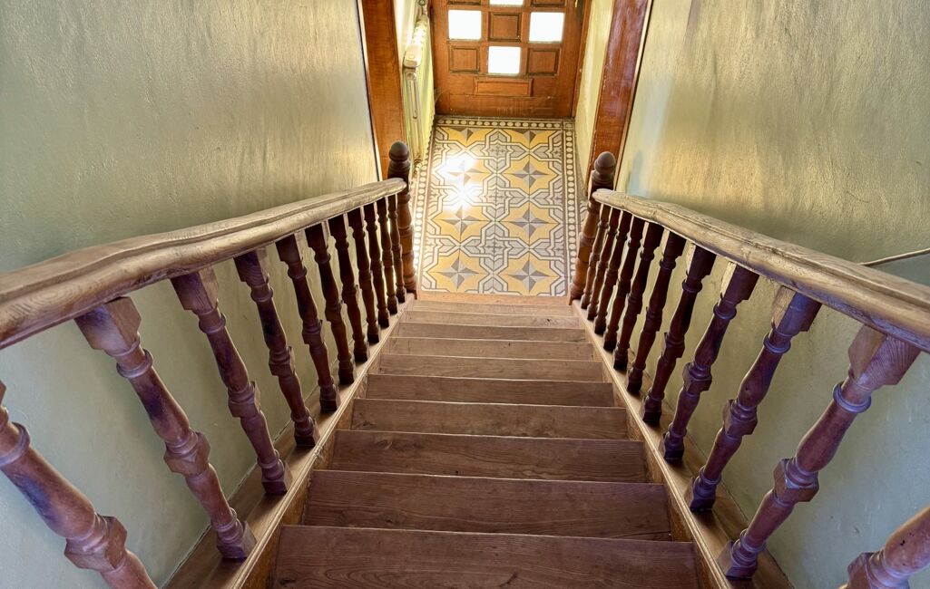 Dès l'entrée, de très beaux carreaux de ciment d'époque et un bel escalier en chêne donnent le ton.