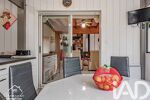 Idéalement située, la cuisine aménagée et équipée en 2023 constitue un véritable point central de distribution. Elle relie naturellement le séjour, la véranda et mène également vers un espace particulièrement rare dans une maison : la piscine intérieure.
