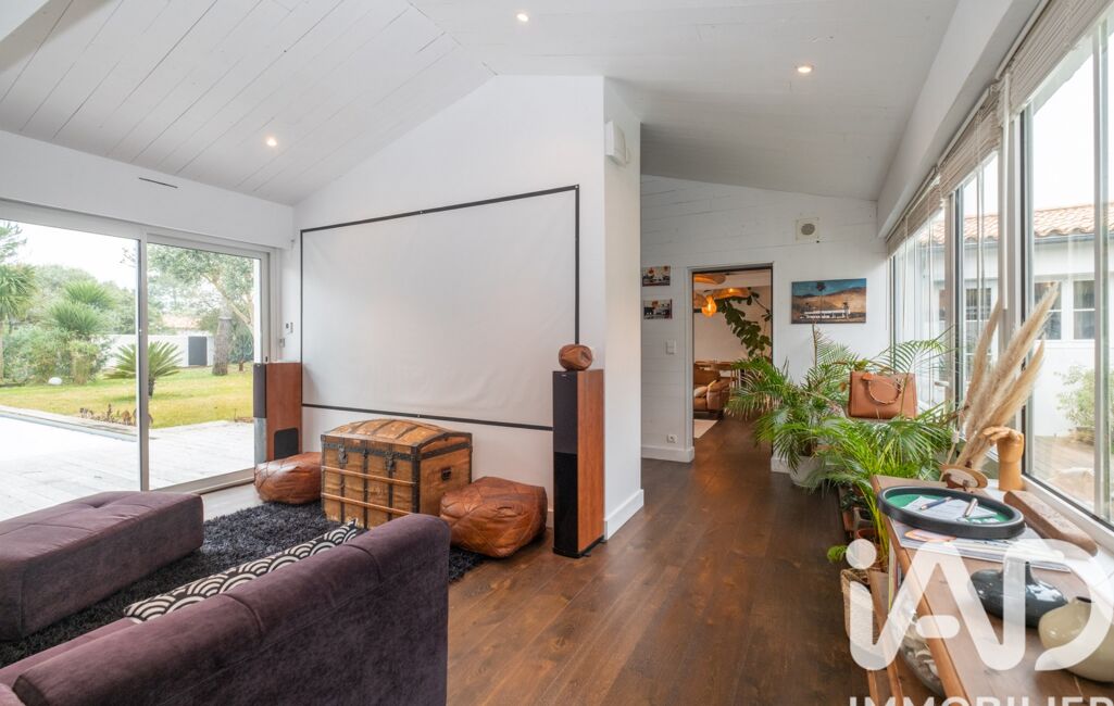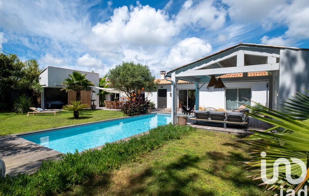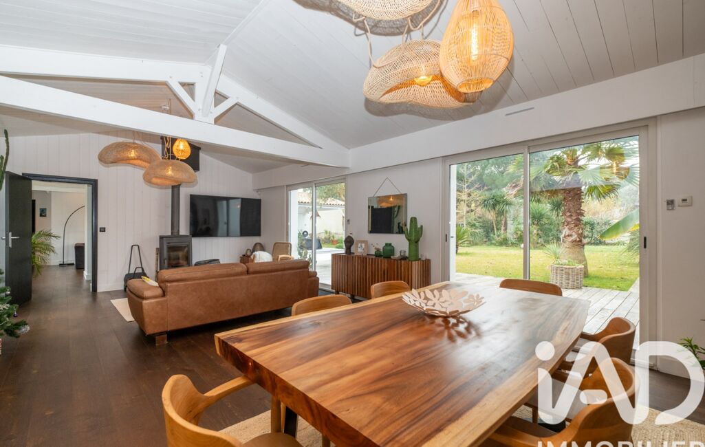 iad France - Carole Pasquet vous propose: Rare, au calme, Les Grenettes quartier très prisé à 2 minutes à pied de la plage et du spot de surf, maison rénovée en 2020 de 205m² à Sainte-Marie-de-Ré. Cette maison de plain-pied offre 4 chambres, dont une suite parentale avec une salle de bain et un dressing, 2 salles d'eau, un grand séjour lumineux, un salon TV, une cuisine équipéeainsi qu'une buanderie. Les pièces sont spacieuses et offrent un confort optimal même hors saison grâce au poêle. Vous pourrez profiter d'un jardin paysagé exposé sud-est, avec une piscine chauffée. Un parking est également disponible ainsi qu'un grand garage. L'intercom et la fibre optique sont des atouts supplémentaires pour votre confort au quotidien. Ne manquez pas cette opportunité de vivre dans un cadre paisible au calme et sans travaux, à proximité des commodités de Sainte-Marie-de-Ré.