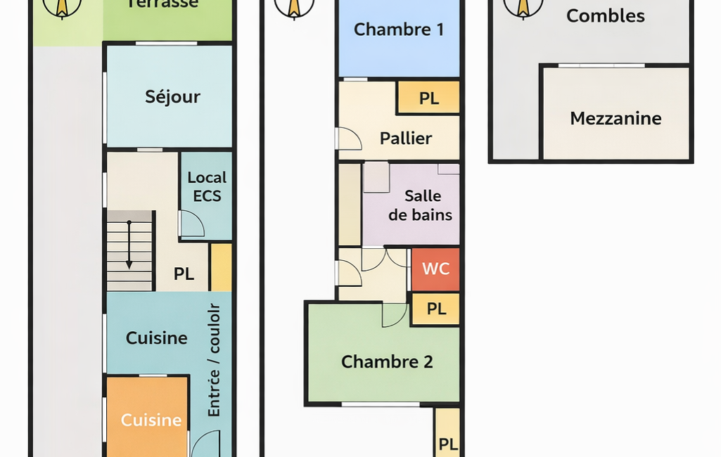 - Nbre. de chambres : 3