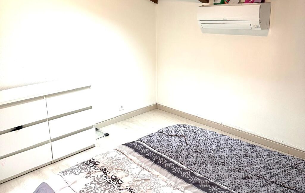 À l’étage, l’espace nuit se compose de deux belles chambres lumineuses équipées de climatisation réversible et de velux, d’une salle de bains, d’un WC indépendant, ainsi que de nombreux placards intégrés et d’un palier bien pensé pour la circulation.