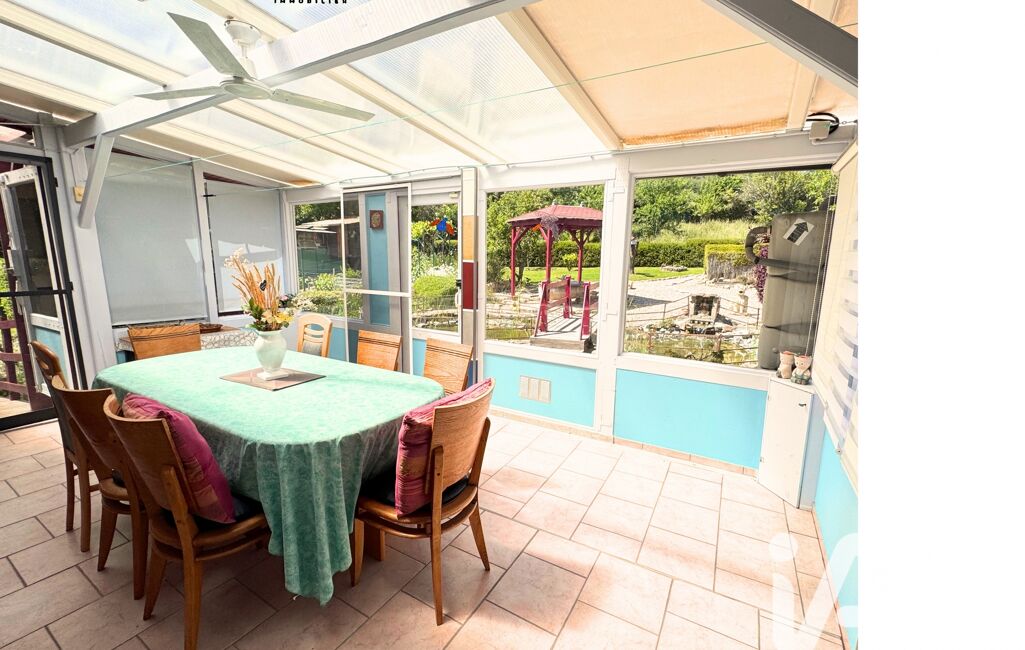 Depuis cette véranda, vous accéderez au splendide jardin paysager, entretenu avec passion où se côtoient vignes, potager, bassins à poissons, et arbres fruitiers...une atmosphère bucolique, presque hors du temps.