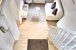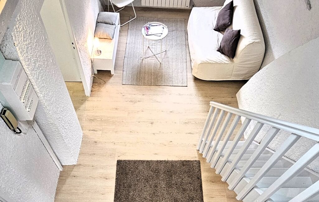 L’appartement propose deux chambres, dont une à l’étage avec un espace bureau, parfait pour le télétravail.