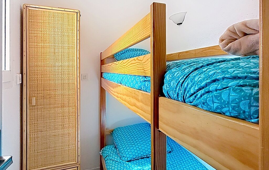 -À gauche, un coin nuit avec fenêtre, actuellement aménagé avec des lits superposés (modulable selon vos besoins)