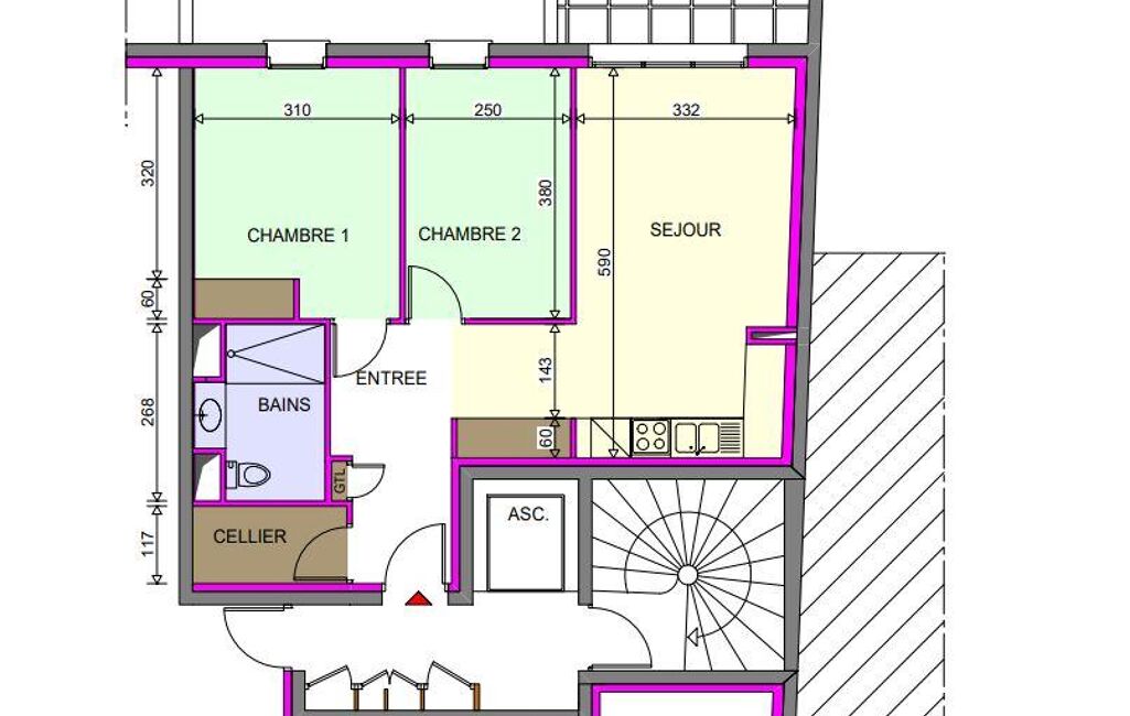 - Surface habitable : 58 m²