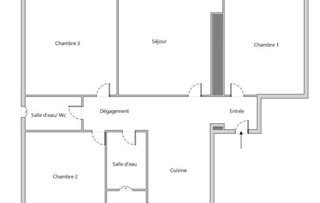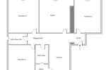 L'appartement comprend 3 chambres spacieuses, une cuisine équipée, un salon lumineux, une salle de bain, une salle d'eau avec un WC, et une buanderie.