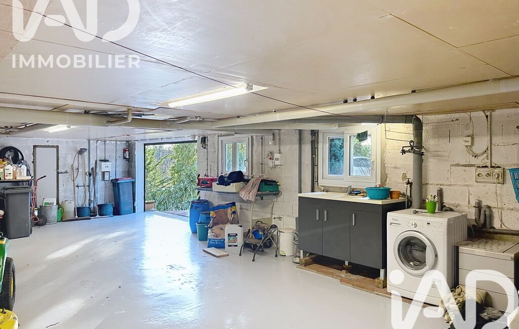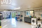 - Grand garage avec rideau motorisé, permettant de stationner plusieurs voitures, et comprenant un espace buanderie avec évier,