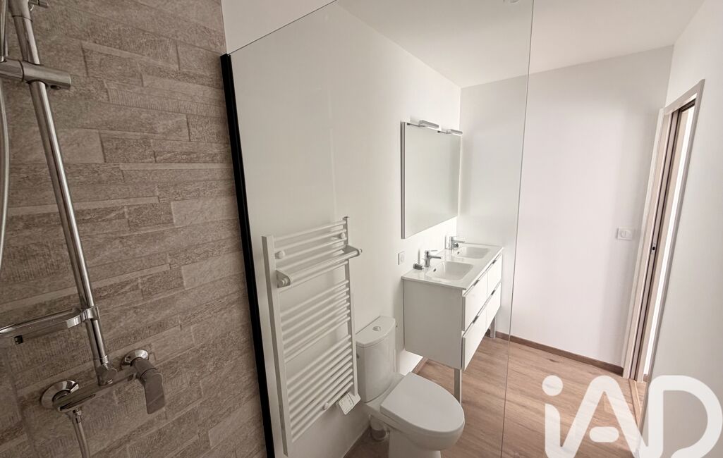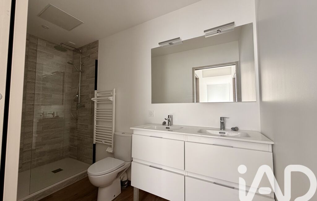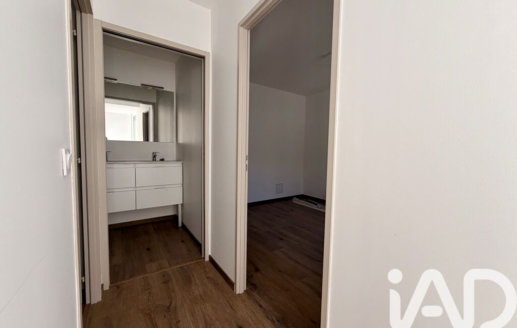 À l’étage, le bien dispose de deux chambres confortables de 12 m² et 14 m², ainsi qu’une salle d’eau moderne avec double vasque, miroir et rangements.