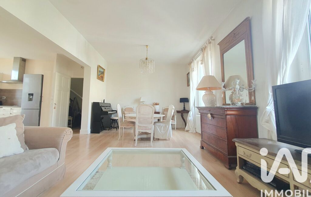 - Séjour lumineux avec parquet ancien, cheminées décoratives, et hauteur sous plafond