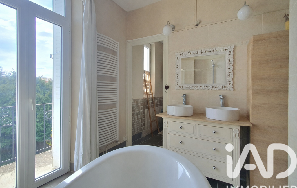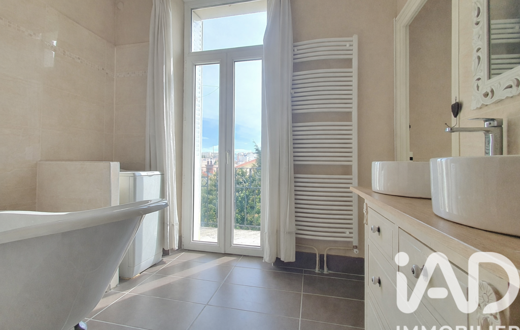 - Une salle de bain avec baignoire et balcon