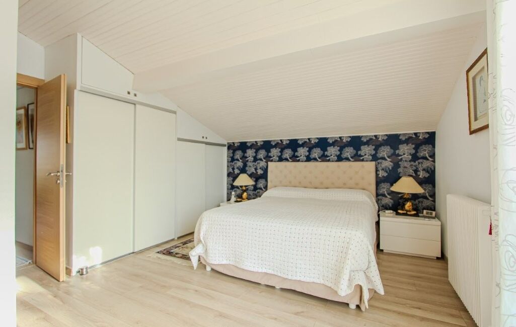 À l’étage, l’espace nuit se compose de trois belles chambres, dont une spacieuse suite parentale avec dressing et salle de bains complète. Une salle d’eau supplémentaire vient parfaire cet étage aux prestations soignées.