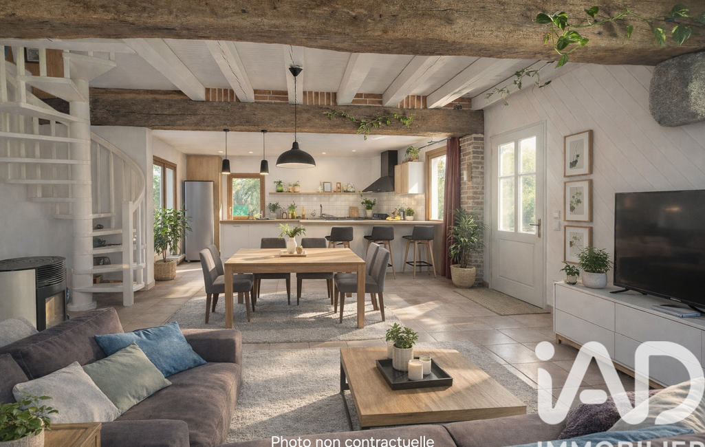 Dès l’entrée, la maison dévoile une pièce de vie lumineuse avec cuisine ouverte, offrant un espace convivial propice aux moments de partage.
