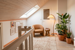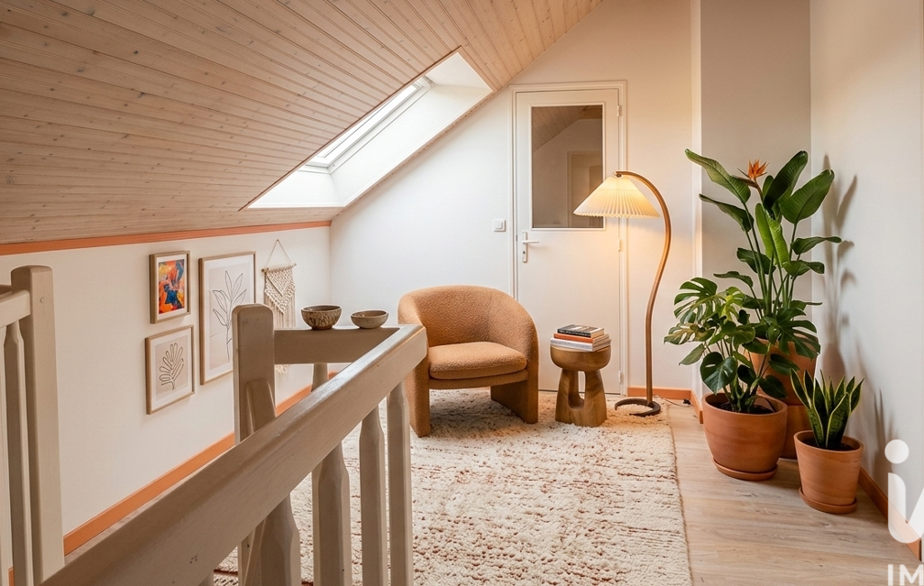 À l’étage, un palier distribue deux chambres, un bureau – idéal pour le télétravail ou une chambre d’enfant – ainsi qu’une salle d’eau.