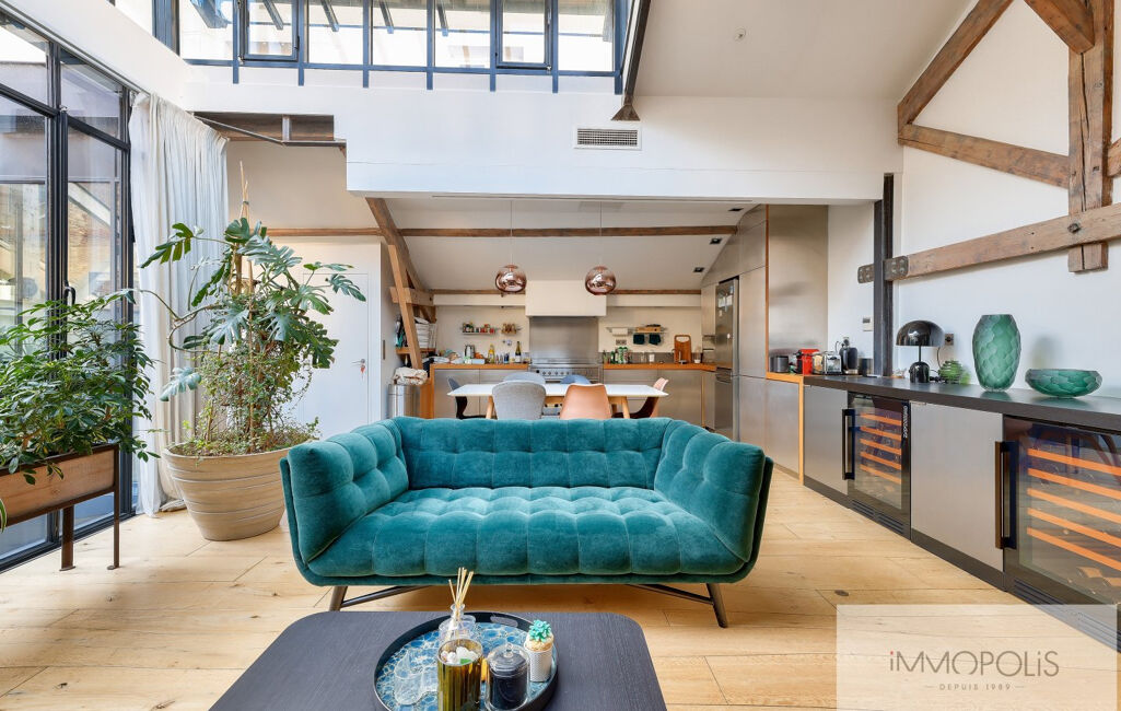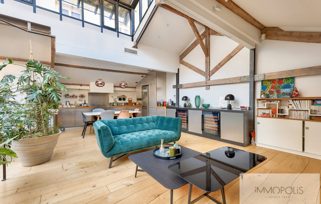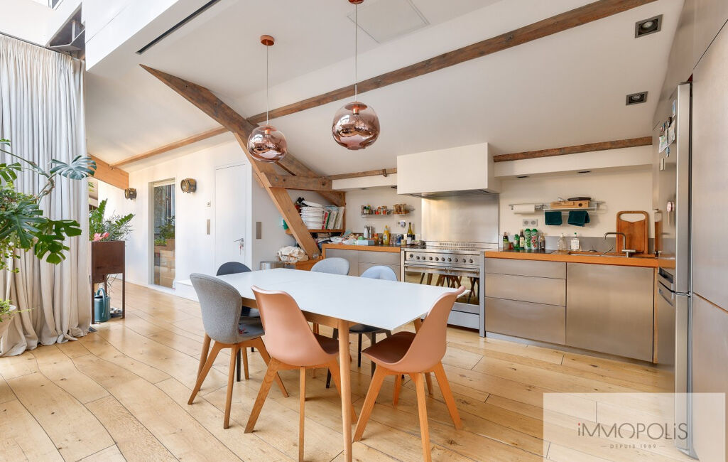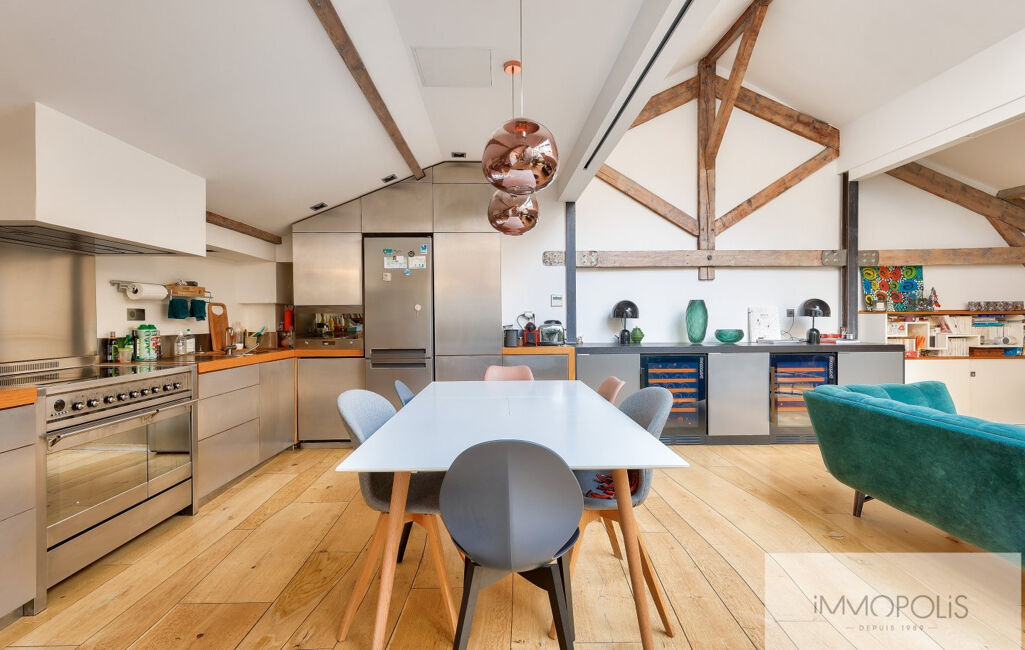 Le bien offre de beau volume (136 m2 au sol) avec une très grande pièce de vie et cuisine dinatoire ouverte, le tout sous ce toit cathédrale en verrière.