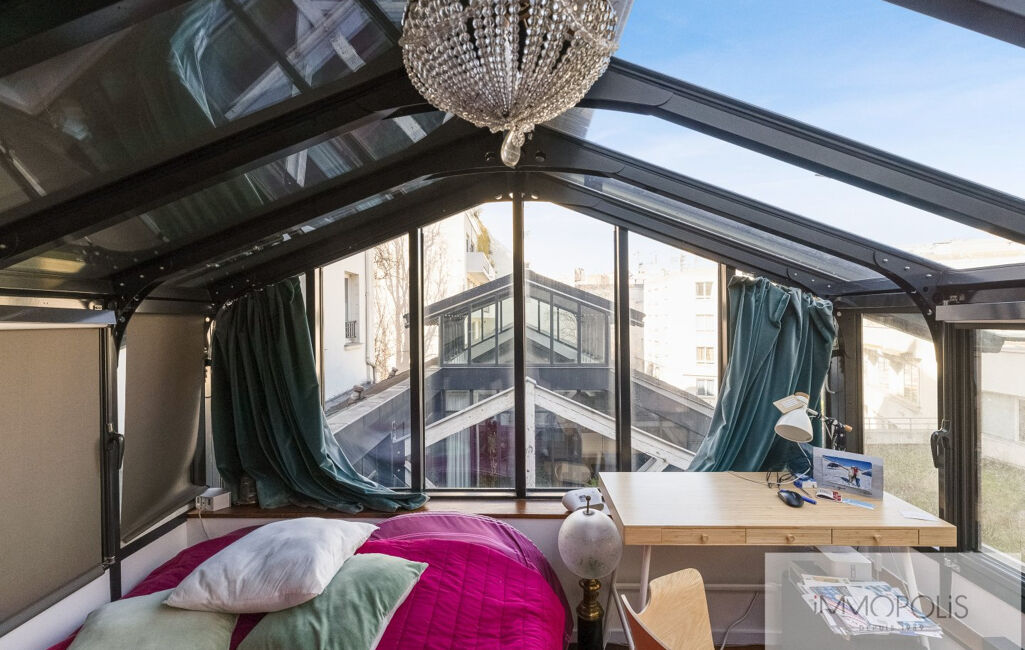 Idéalement situé, dans le secteur CAULAINCOURT/ JOSEPH DE MAISTRE, tout près des Abbesses, au dernier étage d'un immeuble ancien en arrière cour d'un ensemble d'anciens ateliers IMMOPOLIS vous propose ce loft comme une maison avec entrée privative de 3 pièces 2 chambres (possibilité de créer une troisième chambre).