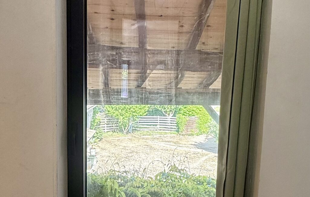 La pièce de vie s’ouvre sur un espace clos comprenant une belle terrasse couverte, une cour pour pouvoir stationner plusieurs véhicules et un jardin pour profiter des beaux jours .
