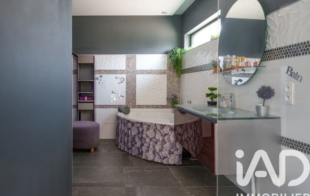 A l'étage, une grande chambre de 25m2 au sol avec un coin bain avec baignoire et meuble vasque.