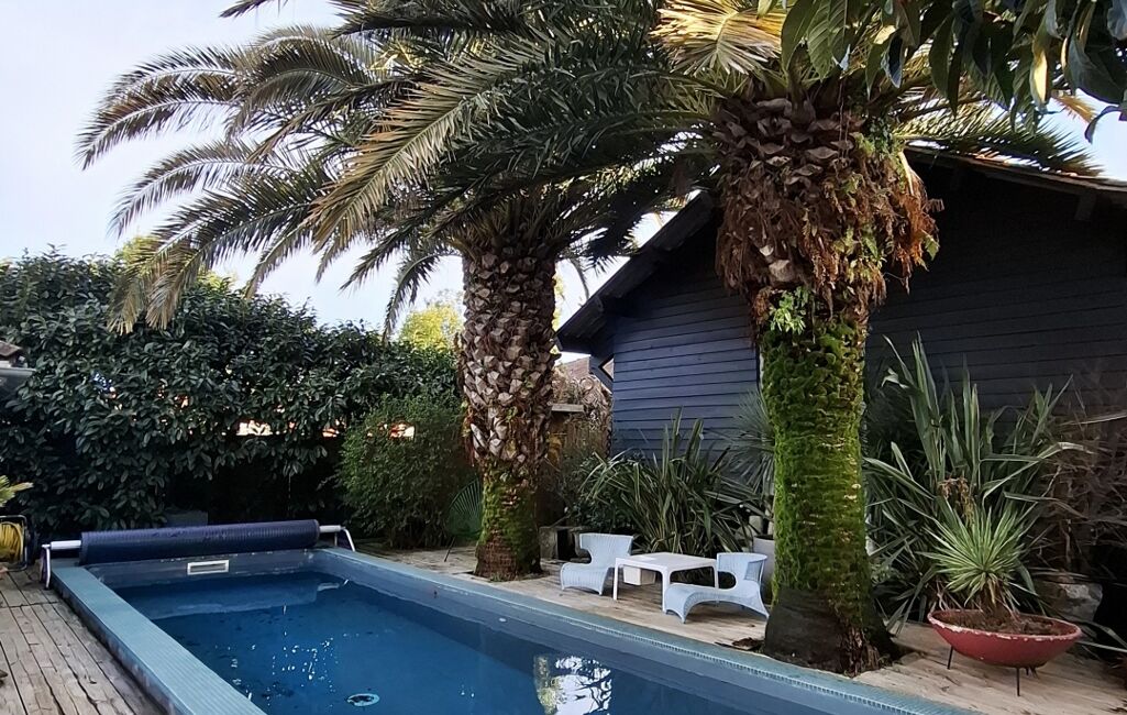 À l'extérieur vous attends une belle piscine chauffée sous ces palmiers, sa grande terrasse et son bar pour profiter des cocktails landais.