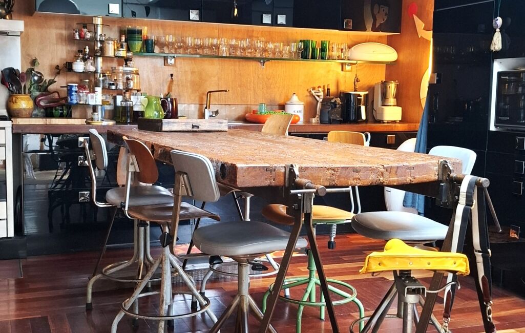 La deuxième partie est constituée de 150m² d'habitation avec son lumineux salon afin de profiter de moment convivial. Une cuisine atypique , ouverte et équipée s'ajoute à cette espace chaleureux avec ses poutres apparentes. S'ajoute une salle de bain et wc dépendant.