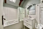 À l’étage : un palier desservant deux belles chambres, ainsi qu’une salle de bain avec WC intégrés.