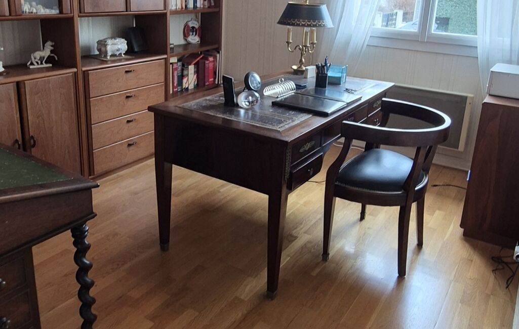- au Rez-de-chaussée, de 2 chambres avec placard (14 et 12m²), d'un bureau, d'une grande pièce de vie, d'une cuisine aménagée, d'une salle de bain et d'un WC séparé.
