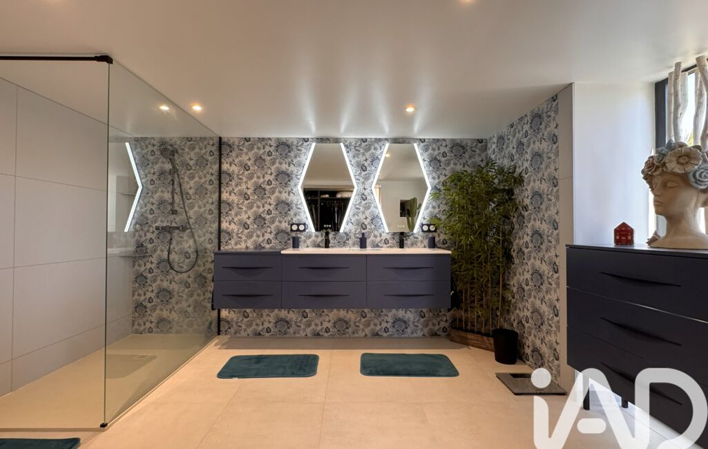 Toujours de plain-pied, l’extension dédiée à la suite parentale, réalisée en 2025, développe un espace de plus de 39 m². Elle comprend une chambre de plus de 19 m² ouverte sur l’extérieur, un dressing moderne totalement aménagé ainsi qu’une salle d’eau élégante avec douche à l’italienne et double vasque.