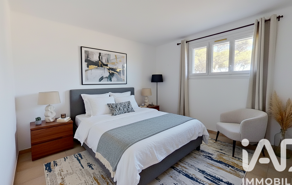 Édifiée sur un terrain plat d’environ 850 m², dans une petite rue peu passante, la maison développe 85 m² habitables et bénéficie d'un très joli aperçu mer.