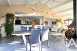 D’une cuisine ouverte entièrement équipée avec bar, incluant une tireuse à bière / boisson de type professionnel, idéale pour des soirées conviviales,