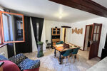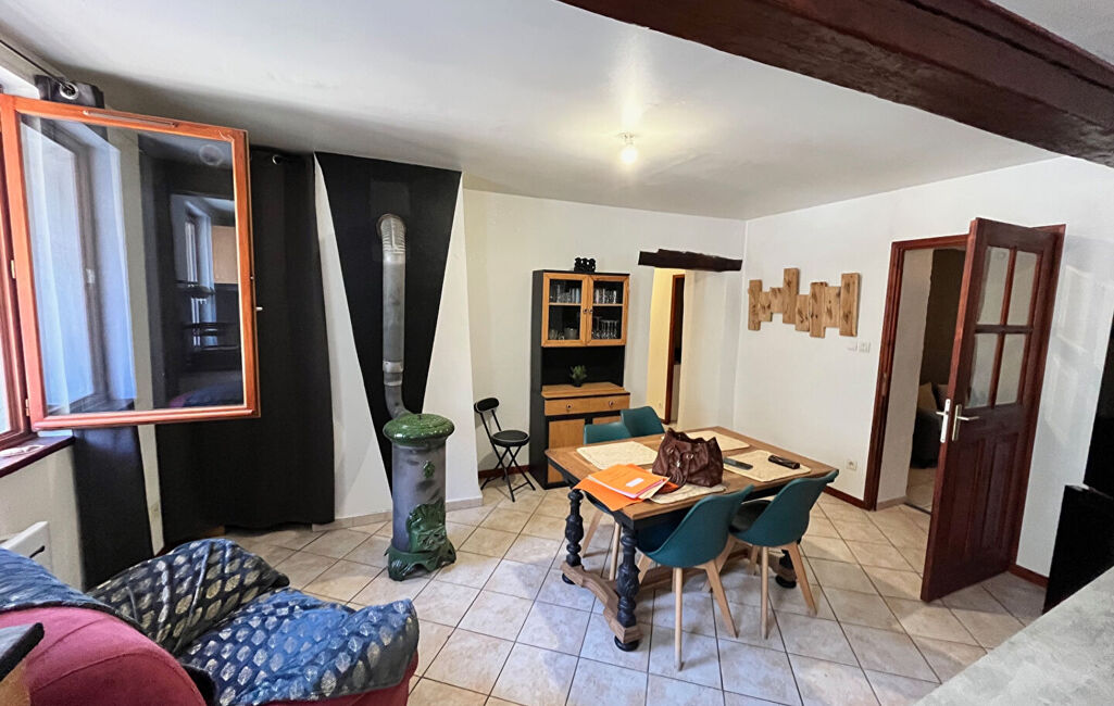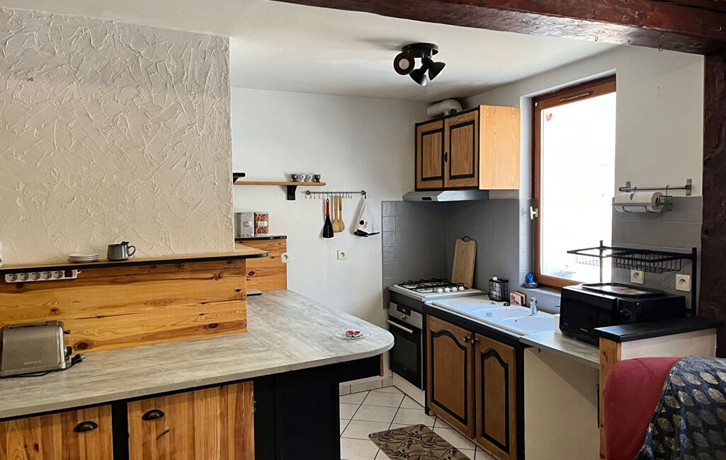 Aménagé ainsi : une entrée/coin salon, une pièce à vivre avec cuisine aménagée et équipée, un poele à bois, un couloir dessert une petite chambre, une salle de douche avec meuble vasque, et machine à laver, wc séparé, puis une grande chambre. Vendu avec une cave.