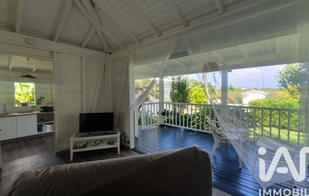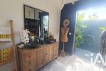 iad France - Vanessa Aymon vous propose: Charmante villa impeccable au style exotique de 110m2 + une terrasse de 68m2 édifié sur une magnifique parcelle arborée et fleurie de 1077m2, sans vis à vis, dans une résidence très prisée à 3km du centre de St François.