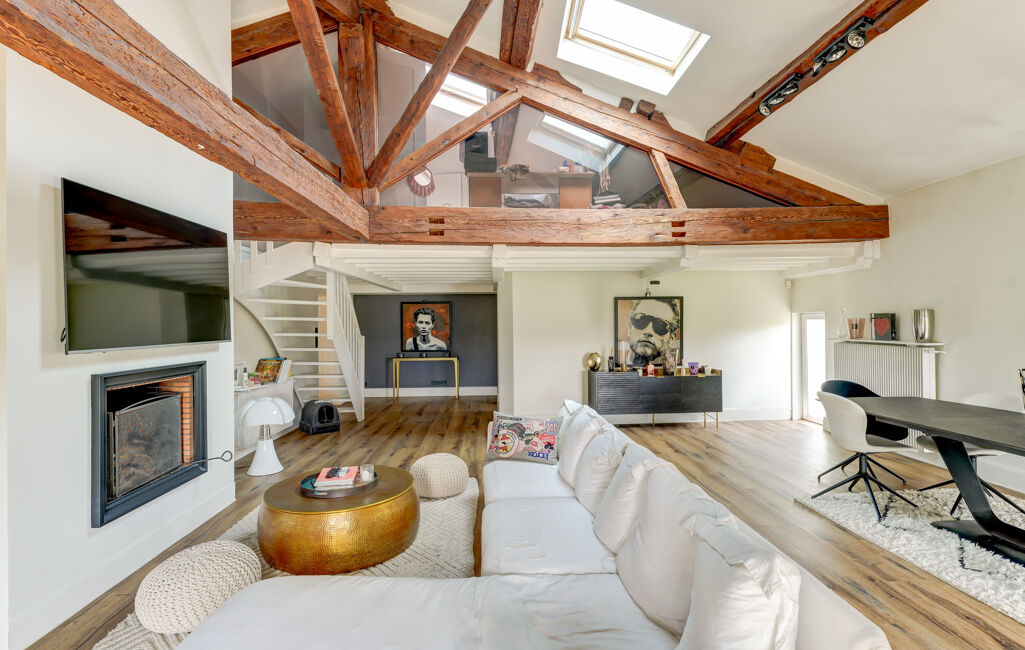 Dès l'entrée, vaste et lumineuse, vous accédez à une superbe pièce de vie de plus de 58 m², sublimée par une cheminée, une charpente apparente, des fenêtres de toit et une double exposition. La cuisine, aménagée et entièrement équipée, est attenante au séjour, et un espace buanderie complète idéalement ce niveau.