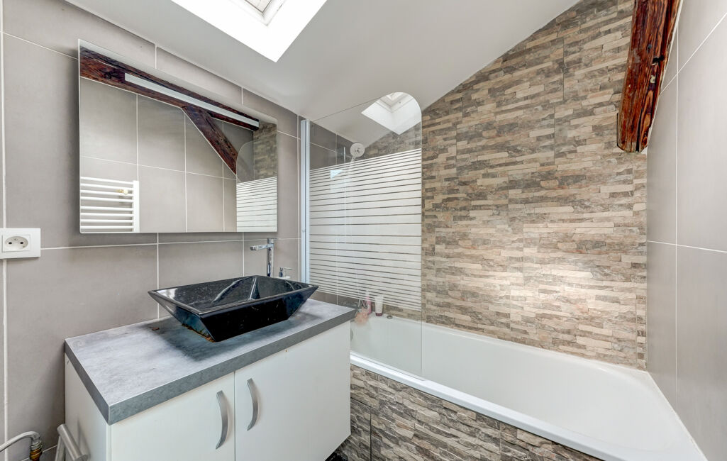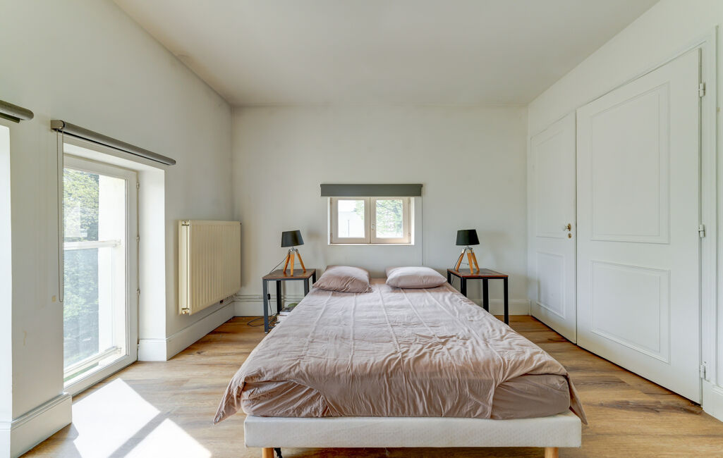 La partie nuit se compose de trois chambres de belles dimensions ainsi que d'une grande salle de bains avec baignoire et douche. À l'étage, une quatrième chambre mansardée bénéficie de sa propre salle de bains et de son WC, offrant un espace indépendant idéal pour un adolescent, un invité ou un bureau.