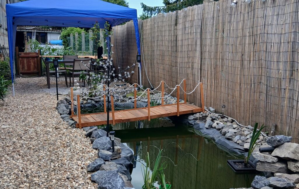 - Extérieur : terrasse offrant un espace extérieur, jardin aménagé d'un petit bassin à poissons, d'une petite cuisine d'été et d'un potager.