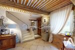 Vaste entrée donnant accès d'une part à un salon cathédrale avec cheminée et coin bar, d'autre part à un bureau ou chambre, cuisine de caractère et salle à manger attenante, arrière-cuisine, buanderie, cave... & de nombreux rangements.