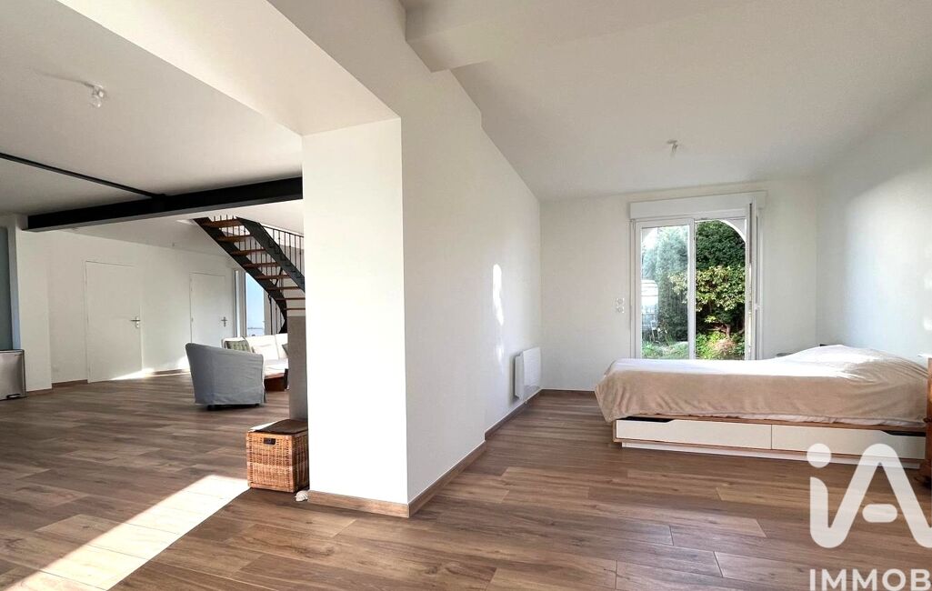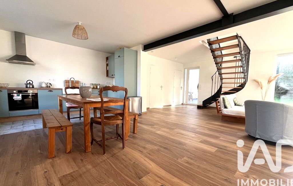 Au rez-de-chaussée, un spacieux séjour de 60m² avec poêle à bois, une cuisine ouverte entièrement équipée, une véranda chauffée avec point d'eau pouvant servir d'atelier ou de deuxième salon, une salle d'eau, un toilette séparé et une pièce de plus de 20m² (non fermée pour l'instant) qui offre un espace convivial et lumineux et peut être transformée en vue d'une deuxième chambre ou bureau ou dressing.