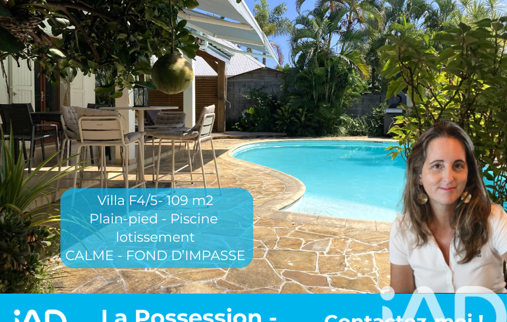 iad France - Audrey Guiet vous propose: !! EN EXCLUSIVITÉ : Charmante maison de Plain-Pied de type F4/5 de 109m2 avec Jardin et Piscine - à La Possession - quartier MOULIN JOLI en lotissement - AU CALME EN FOND D'IMPASSE
