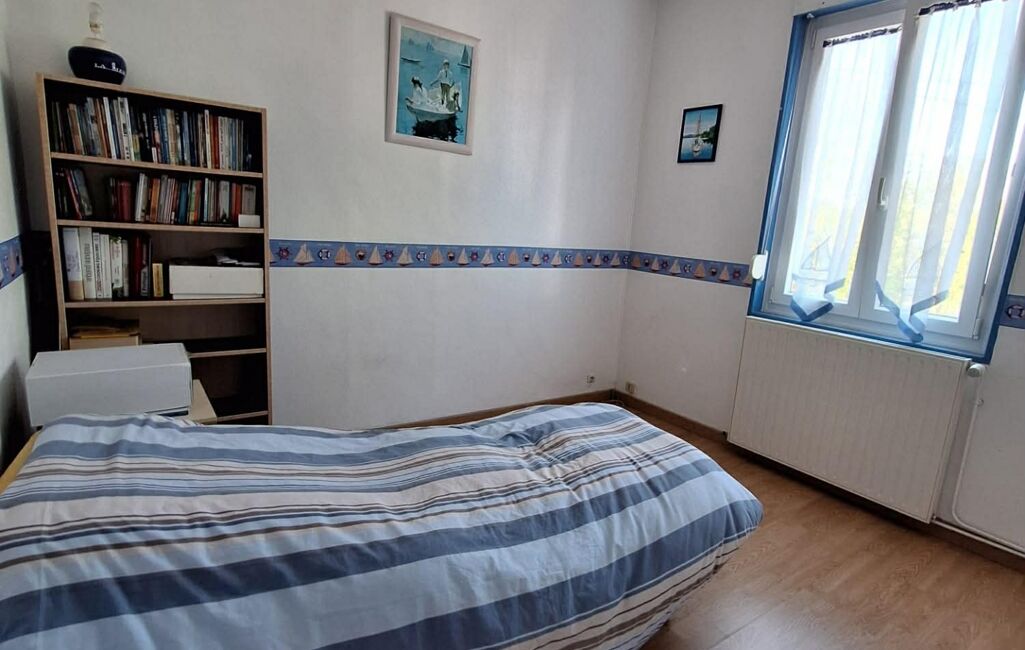 Au premier étage, un palier distribue deux chambres parquetées de 10 et 12m2 avec placards intégrés.