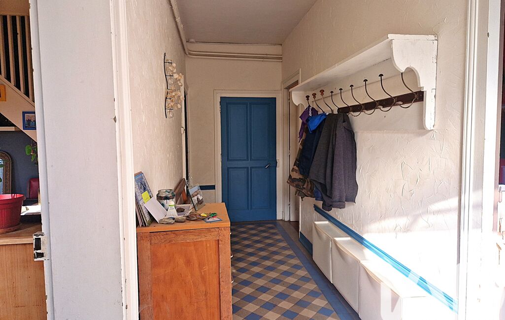 iad France - Alain Barbe vous propose: Maison de village mitoyenne d’environ 162 m² habitables, construite dans les années 1940, offre un cadre de vie paisible dans une rue calme tout en bénéficiant d’un environnement pratique à proximité des commodités. Implantée sur un terrain clos de 926 m², elle séduit dès l’arrivée par sa grande cour en enrobé permettant de stationner facilement plusieurs véhicules et donnant accès à un vaste garage attenant. Celui-ci offre un bel espace pour le stationnement mais également un atelier avec zone de rangement au fond ainsi qu’une cave, apportant de nombreuses possibilités de stockage.