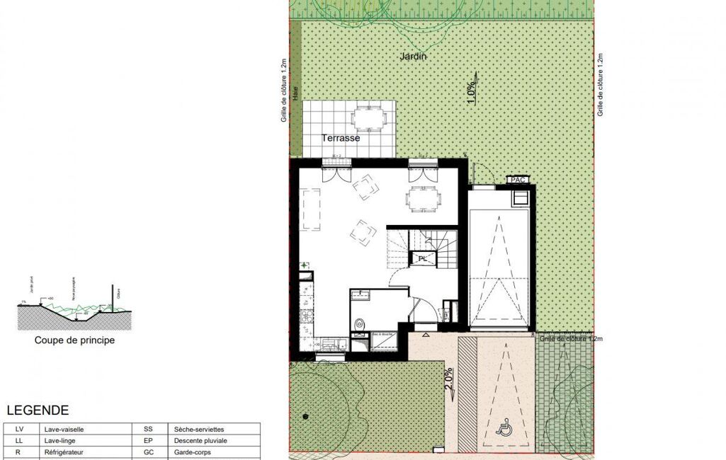 Le jardin privatif et la terrasse prolongent naturellement la maison vers l’extérieur. On peut y prévoir des repas d’été, laisser les enfants jouer après l’école ou profiter d’un moment de calme sans quitter son chez-soi.